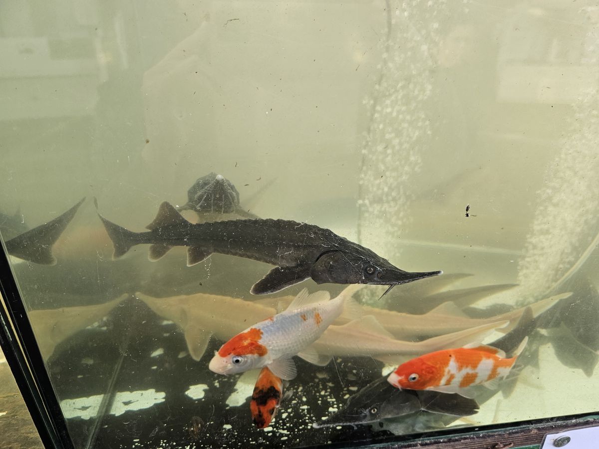 Ryby v akváriu včetně jesetera