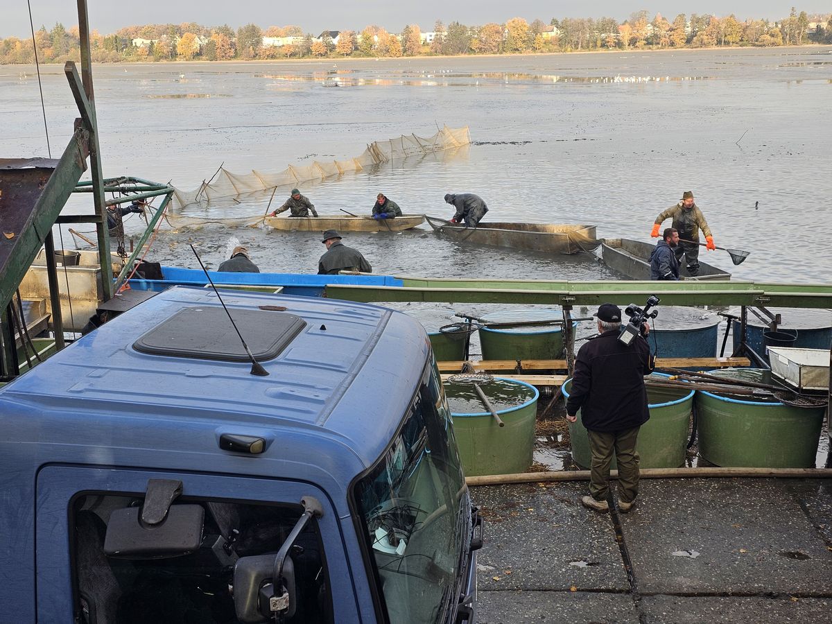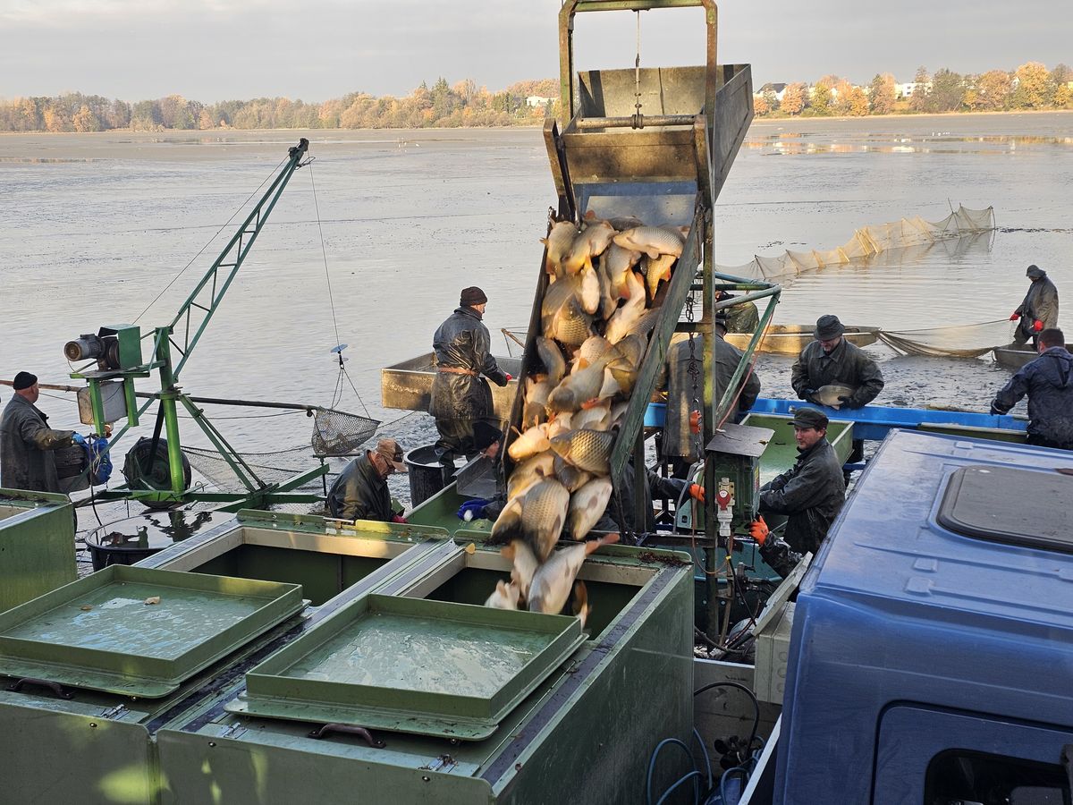 Samotný výlov byl ukázkou tradičního rybářského řemesla. Rybáři v nepromokavém oblečení stáli v chladné vodě a drželi sítě, další na lodích lovili kapry do podběráků a předávali je ke třídění kolegům. K dispozici zde byly i strojově řízené podběráky, které nabíraly kapry ve velkém a předávaly je k třídění. Vytříděné ryby se pak po skluzavce svezly přímo do kádí připravených k transportu. Kapři byli pěkně urostlí, vypadalo to, že mají 3–4 kg. Syn by se mohl dívat do nekonečna – postupně se plnily nádrže naložené na nákladních autech a bylo vidět, že je celý tým sehraný. Šlo to jako po másle.