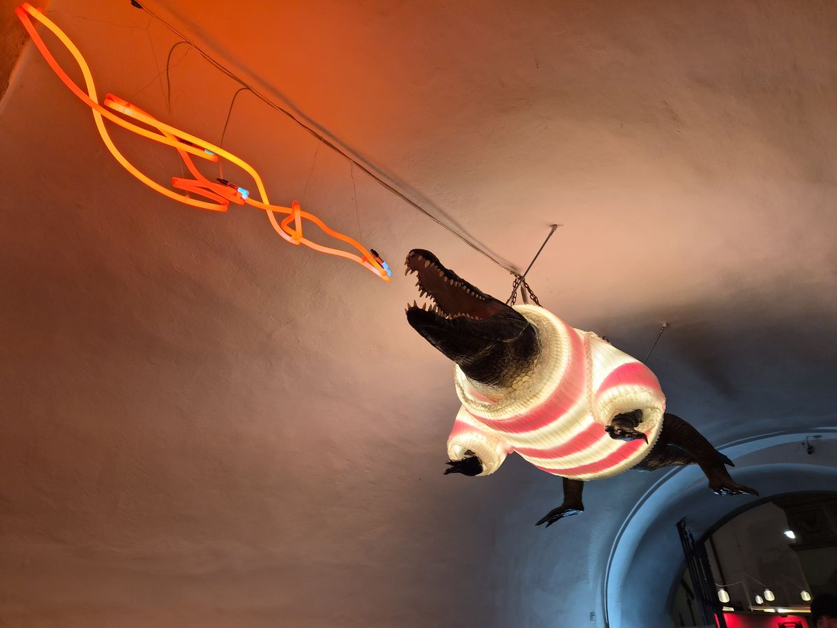 Pokud chcete vidět jeho reálnou podobu, musíte popojít k nádvoří Staré radnice. Brněnský drak je navlečený do svetru a z jeho tlamy šlehá oheň – samozřejmě v podobě světelné instalace.
