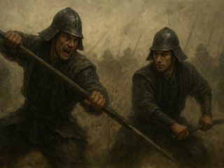 Když se první brána sídla Kiry Yoshinaky pod tlakem beranidla prolomila, nebyl to výkřik hněvu. Nebyla to exploze zloby. Byl to tichý, neodvratný pohyb ozubeného kola, které se roztočilo už dávno. Stráže se probudily příliš pozdě. Boj byl krátký, chaotický a brutální. Ocel narážela na ocel, sníh se barvil krví a křik zraněných se ztrácel v noci.