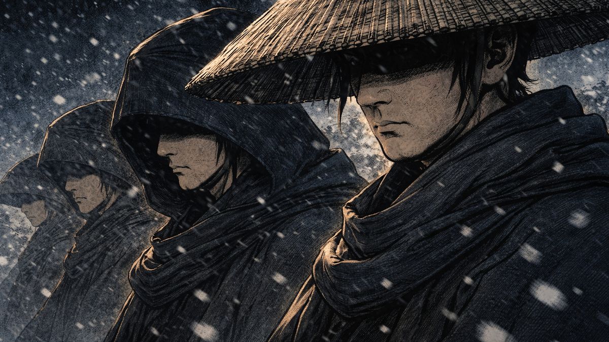 Meče byly skryté pod plášti, ruce ztuhlé nejen chladem, ale i dlouhým čekáním. Někteří nich byli ještě před dvěma lety váženými samuraji sloužícími svému pánovi. Teď se pohybovali jako stíny, bez hodností, bez ochrany, bez budoucnosti. Neříkali si róninové nahlas. To slovo znamenalo víc než ztrátu pána – znamenalo společenskou smrt.