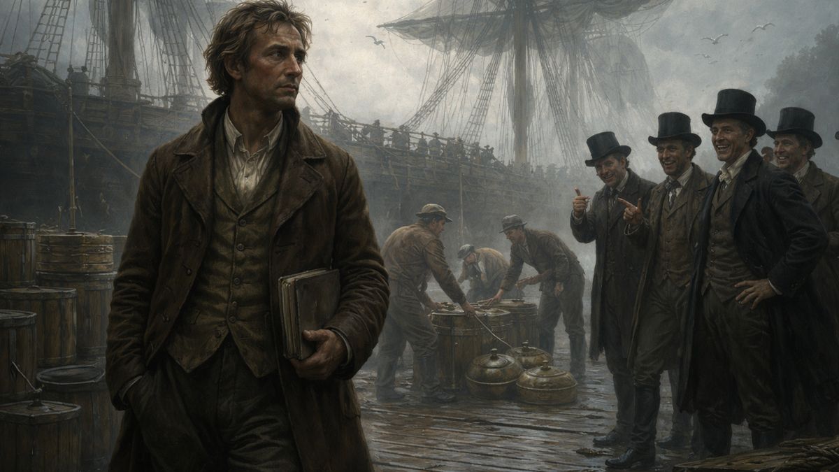 Ráno bylo chladné a mlha se válela nízko nad vodou. Přístav v Nové Anglii byl plný obvyklého ruchu, ale toho dne bylo cítit cosi navíc – očekávání. Nešlo o příjezd válečné lodi ani o vzácný náklad z Evropy. Lidé přišli proto, aby se dívali. Aby byli svědky dalšího omylu Timothyho Dextera.