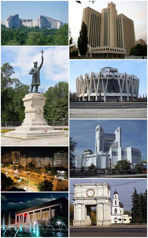 Koláž obrázků zobrazujících Kišiněv, Moldavsko.