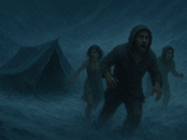 A teď si představme tu osudnou noc. Náhlý svist větru v horách, možná podivné hluboké dunění, které znepokojí výpravu. Najednou se sníh sesouvá a drtí stan, lámání dřevěných saní se mísí s výkřiky. Zranění potřebují pomoc, ale stan je zavalený. Jediná možnost je ho rozříznout a dostat se ven. Venku je pekelný mráz, ale chaos a panika jim nedávají čas vzít si oblečení. Spěchají dolů k lesu, kde doufají, že budou v bezpečí.