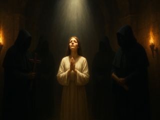 Kamenná podlaha studí do kolen. Jeptiška klečí už dlouhé hodiny, vyčerpaná půstem a bděním. Tělo má zesláblé, mysl se tříští. Modlitba se rozpadá na útržky dechu a šeptaných jmen svatých. Ticho je husté, téměř dusivé. Náhle tělem projede prudký záchvěv, jako by se jí někdo dotkl zevnitř. Přijde bolest, ostrá a spalující, a hned poté vlna horka, sladká a opojná.