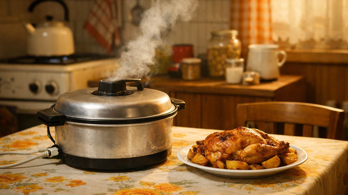 V době, kdy mnoho domácností stále nemělo plnohodnotnou troubu, přinesla řešení. Stačila elektrická zásuvka, kovová mísa a víko s topnou spirálou.