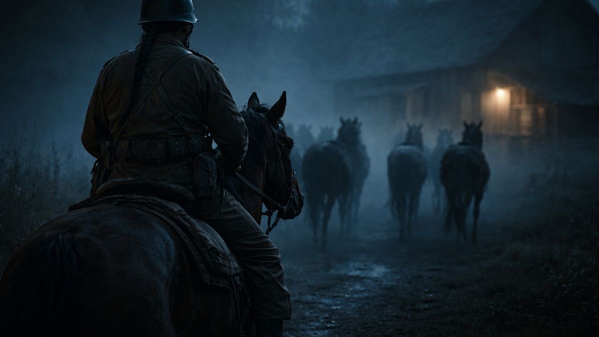 Zastavil se u dřevěných vrat. Uvnitř stáje slyšel koně. Ne tanky, ne nákladní auta, ale koně – živý, starý symbol války. V tu chvíli se mu před očima nepromítala mapa Evropy ani rozkazy velení, ale příběhy jeho děda. Vyprávění o nájezdech na prériích, o odvaze, která se neměřila počtem mrtvých, a o cti, která se dokazovala skutky, ne slovy.