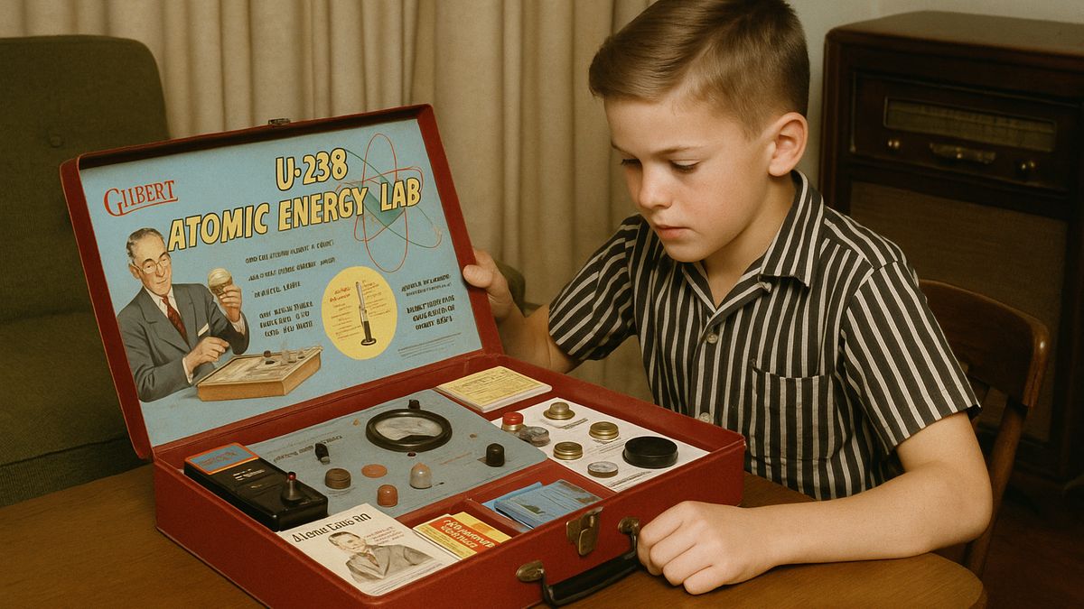 Alfred Carlton Gilbert, bývalý olympionik a zakladatel společnosti A.C. Gilbert Company, byl proslulý tím, že vytvářel vzdělávací sady pro děti. Chemické laboratoře, fyzikální modely – vše, co mohlo rozvíjet dětskou zvídavost. Ale když v roce 1950 spatřil světlo světa „U-238 Atomic Energy Lab“, šel ještě dál. Tato sada byla vybavena čtyřmi radioaktivními vzorky: uranem 238, thoriem, a dvěma dalšími radioaktivními materiály. Děti si mohly měřit radioaktivitu pomocí Geigerova čítače, sledovat částice v mlžné komoře a provádět pokusy s fluorescencí.