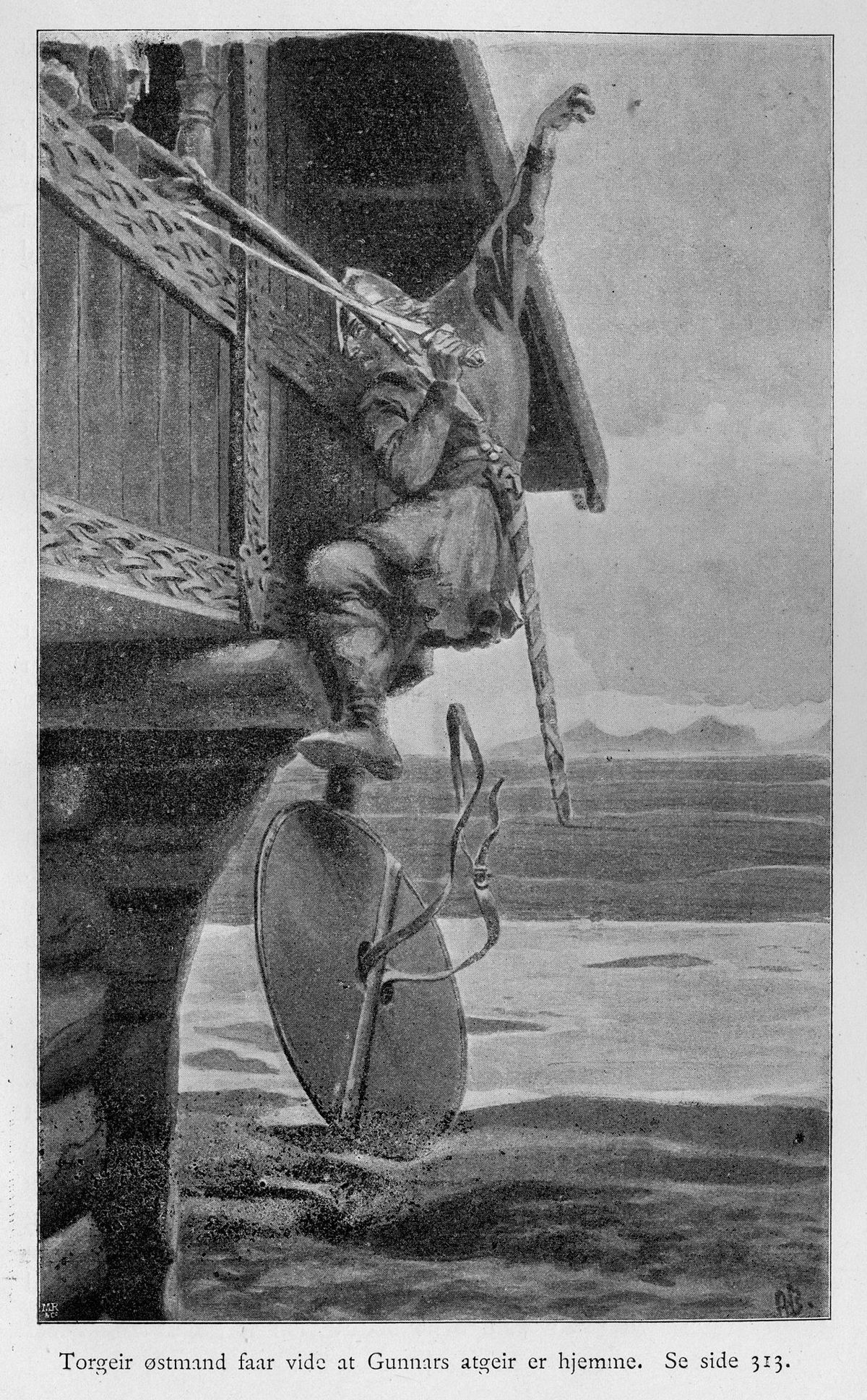 Když Gunnarrovi nepřátelé dorazili k farmě Hlíðarendi, nešlo o náhlý výbuch násilí. Obklíčili dům systematicky, s vědomím, že jednají v souladu se zákonem. Sága líčí Gunnarrův odpor jako poslední, zoufalou obranu muže, který neměl kam ustoupit. Bránil svůj domov s lukem v ruce, střílel šíp za šípem a odrážel útoky, dokud mu síly stačily.