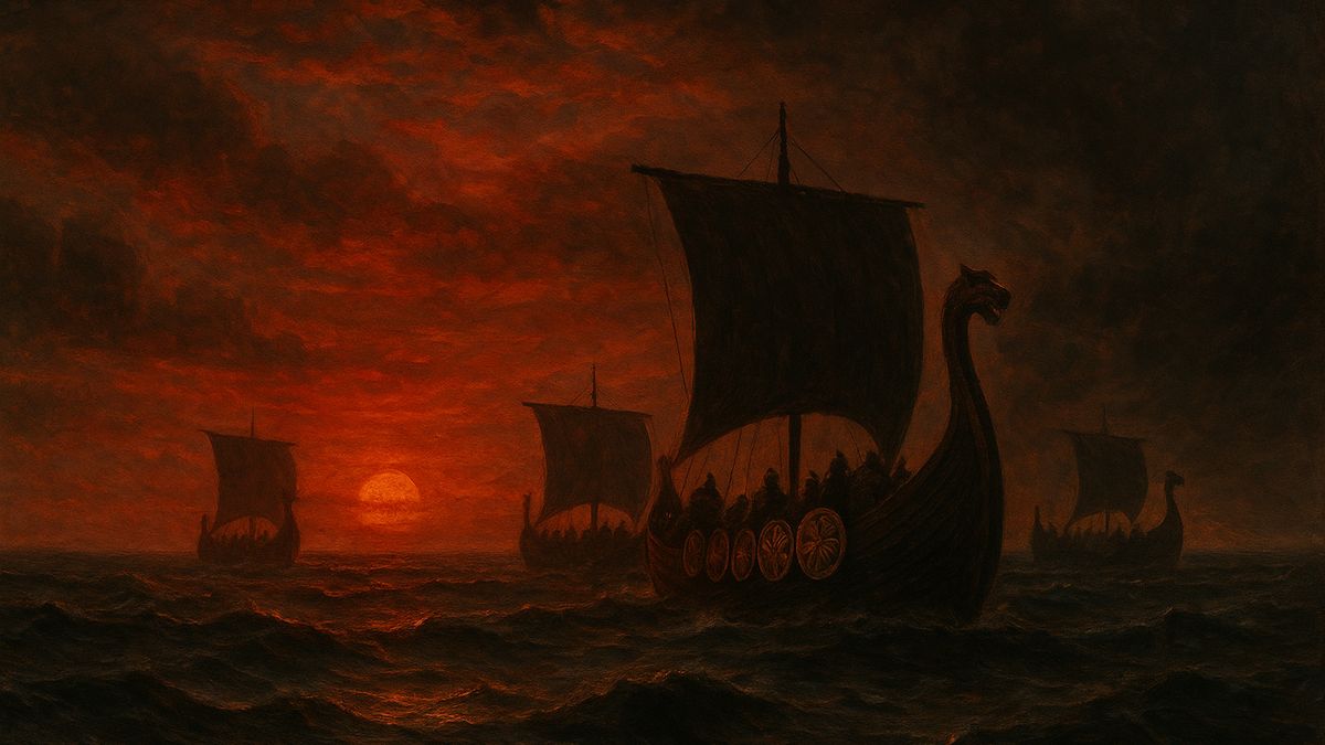 Na severu se zvedla mlha, hustá a šedá, jako by chtěla skrýt to, co se rodilo za obzorem. Jak se přibližovala, nesla s sebou sotva slyšitelný zvuk, tlumený a rytmický. Vesla. Desítky vesel, která se přesně zakusovala do vody.