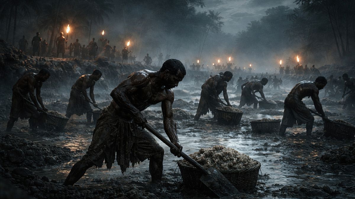 Noc v bažinách byla těžká a dusivá. Slaná voda se leskla mezi rákosím a nad černou hladinou visel hmyz jako živý mrak. Muži stáli po kolena v bahně a jejich ruce svíraly lopaty.