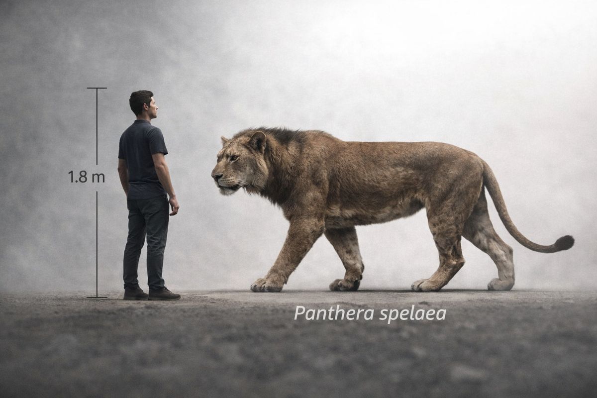 Lev jeskynní (Panthera spelaea) byl jedním z vrcholových predátorů pleistocénní Evropy. Větší než dnešní africký lev, s délkou těla přes dva metry bez ocasu a hmotností kolem 300 kilogramů. Byl přizpůsoben chladnému klimatu a otevřené krajině.