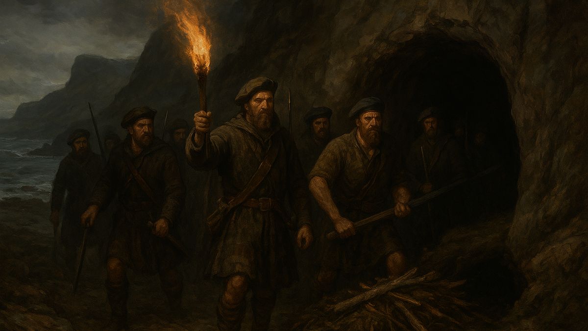 Ostrov Eigg, 1577. Mořská mlha se válela kolem útesů a ostrov byl toho rána tísnivě tichý. Vesničané z klanu MacDonaldů už několik týdnů žili v napětí: lodě MacLeodů se prý objevily u Skye a šířily se zvěsti, že tentokrát jsou odhodláni dokončit svoji pomstu. Když pak na obzoru spatřili temné plachty, které se hrozivě přibližovaly, nezbývalo než jediné – zmizet. Ve spěchu shromáždili děti, staré lidi i zásoby a ukryli se v hluboké jeskyni na jižním pobřeží ostrova.