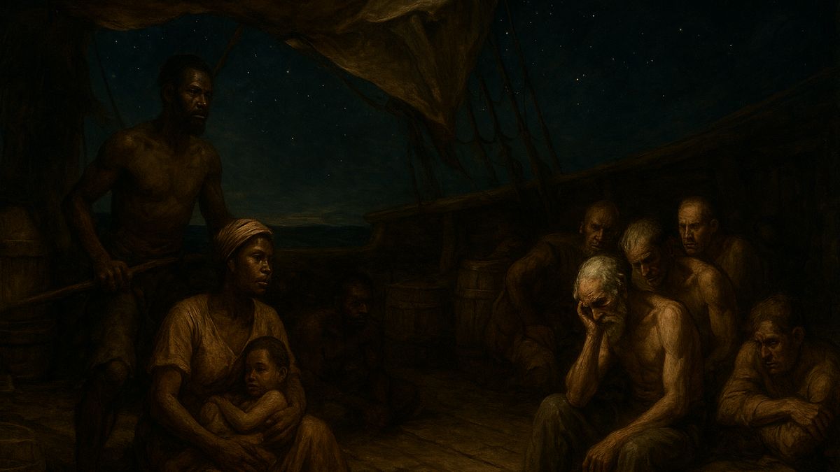 Podpalubí Meermin bylo temné jako hrob. Vzduch pálil v plicích, ticho přerušovalo jen tlumené vzlykání dětí a šepot mužů, kteří se snažili udržet vědomí navzdory žízni. Mezi nimi seděla dívka, Malgašanka sotva dvacetiletá. Její jméno nikdo nezapsal - nebylo třeba pojmenovávat někoho, kdo měl být v Kapském Městě prodán jako zboží, pouhá věc.