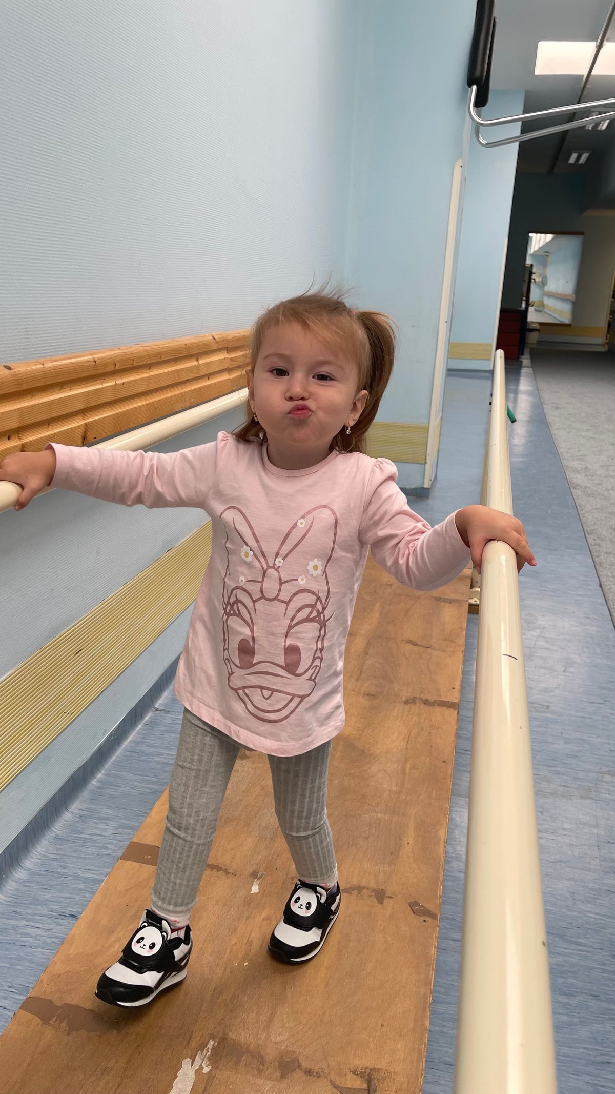 „S Ewiczkou denně procvičujeme chůzi, protahujeme achilovky, pravidelně dojíždíme na fyzioterapii, vodoléčbu a další rehabilitační procedury. Cvičíme také motoriku a posilujeme svalstvo. Začali jsme jezdit i do dětských léčebných lázní, kde Ewiczce velmi pomáhají různé procedury a terapie. Zatím je stále slabá a sama nechodí – pohybuje se pouze s oporou, přidržováním se nábytku nebo s pomocí rehabilitačního chodítka. Jinak se přesouvá po bříšku nebo po zadečku. My ale věříme, že i když pokroky v pohybu a motorice přicházejí pomalu, jednou společně dosáhneme vysněného cíle. Z celého srdce Ewiczku podporujeme a bojujeme s ní každý den!“