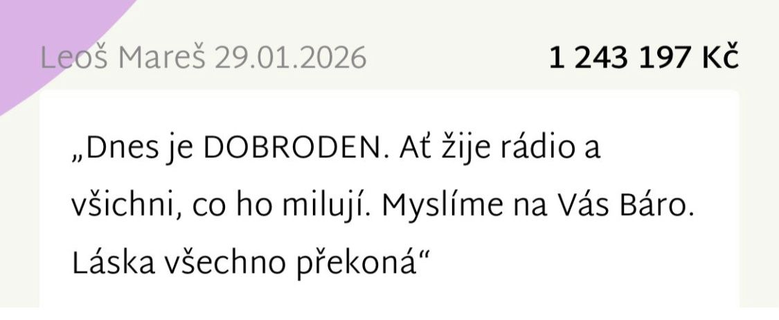 Vzkaz dárce Leoše Mareše u sbírky pro Barunku a její rodinu.