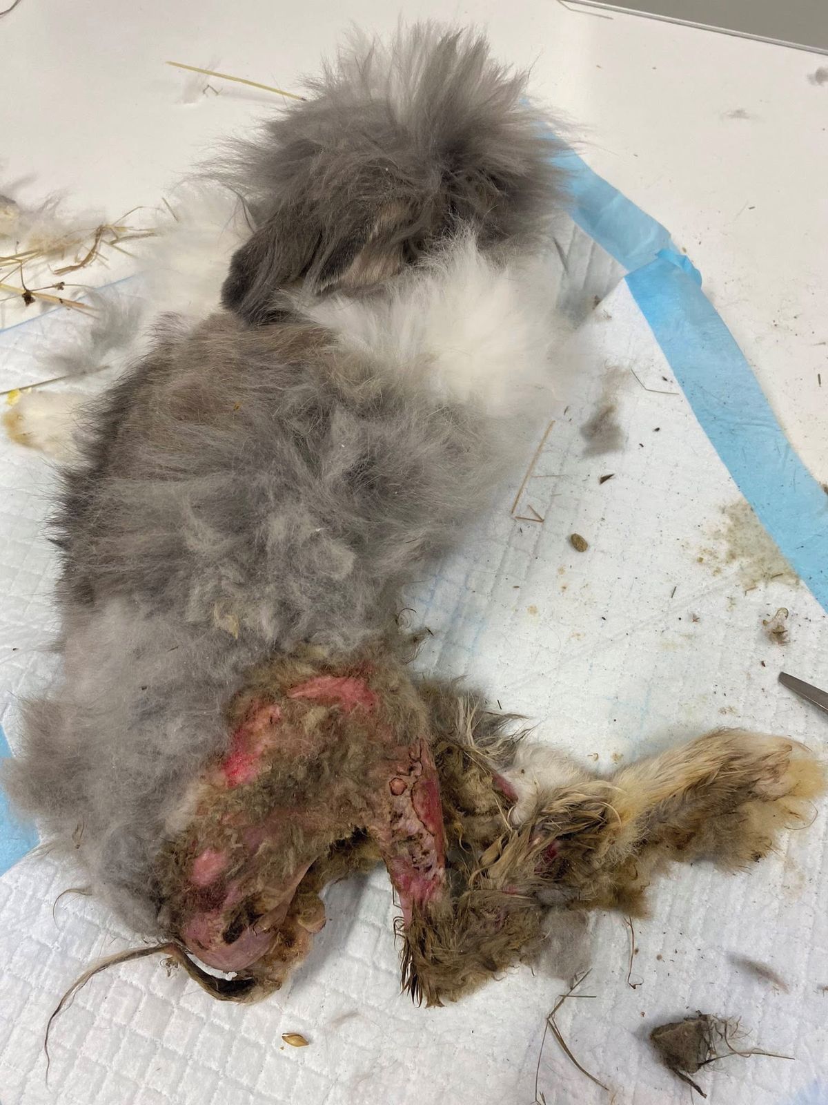„Přinesli mi ji zamotanou do ručníku. Že prý ji našli v popelnici, když vynášeli odpadky a že není zrovna v nejlepším stavu. Z ručníku koukala roztomilá hlavička chlupatého králíčka s živýma očima. Po vyřešení všech formalit jsem si ji odnášela do karantény. Pojď maličká. V noci bylo -10 stupňů, jestli jsi strávila noc v kontajneru, tak to možná odnesly ledviny. Roztomilý kukuč s živýma očima nedával znát žádný problém. Jen divný smrad mě mohl varovat, protože když jsem ji v karanténě vybalila z ručníku, bylo jasné, že případný problém s ledvinami není ten největší průšvih,“ vzpomíná na pár dní starou událost spolumajitelka Pohádkové zahrady Romana Vojířová.