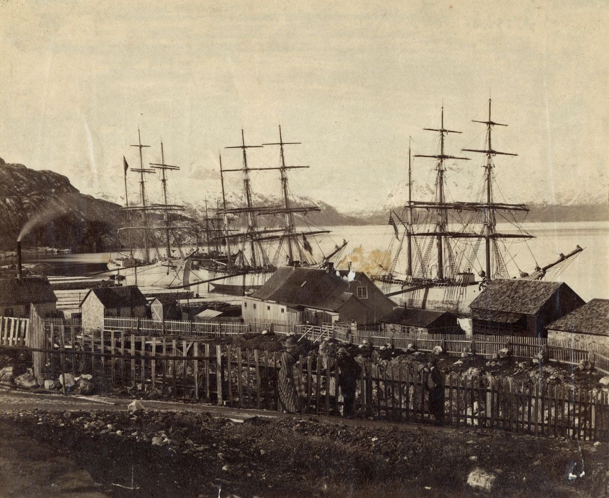 Ivittuut na fotografii z roku 1890. Inuitský název této hornické osady, v minulosti přepisovaný jako Ivigtût, označuje „místo s dostatkem vegetace“ anebo „místo bohaté na trávu“.