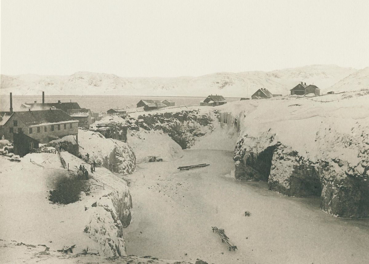 Kryolitový lom v Ivittuutu na fotografii, pořízené někdy mezi lety 1889 a 1910. Autorem snímku je dánský fotograf a ornitolog Thomas Neergaard Krabbe (1861-1936). Na přelomu 19. a 20. století se v dole každoročně vytěžilo asi devět tisíc tun kryolitu.