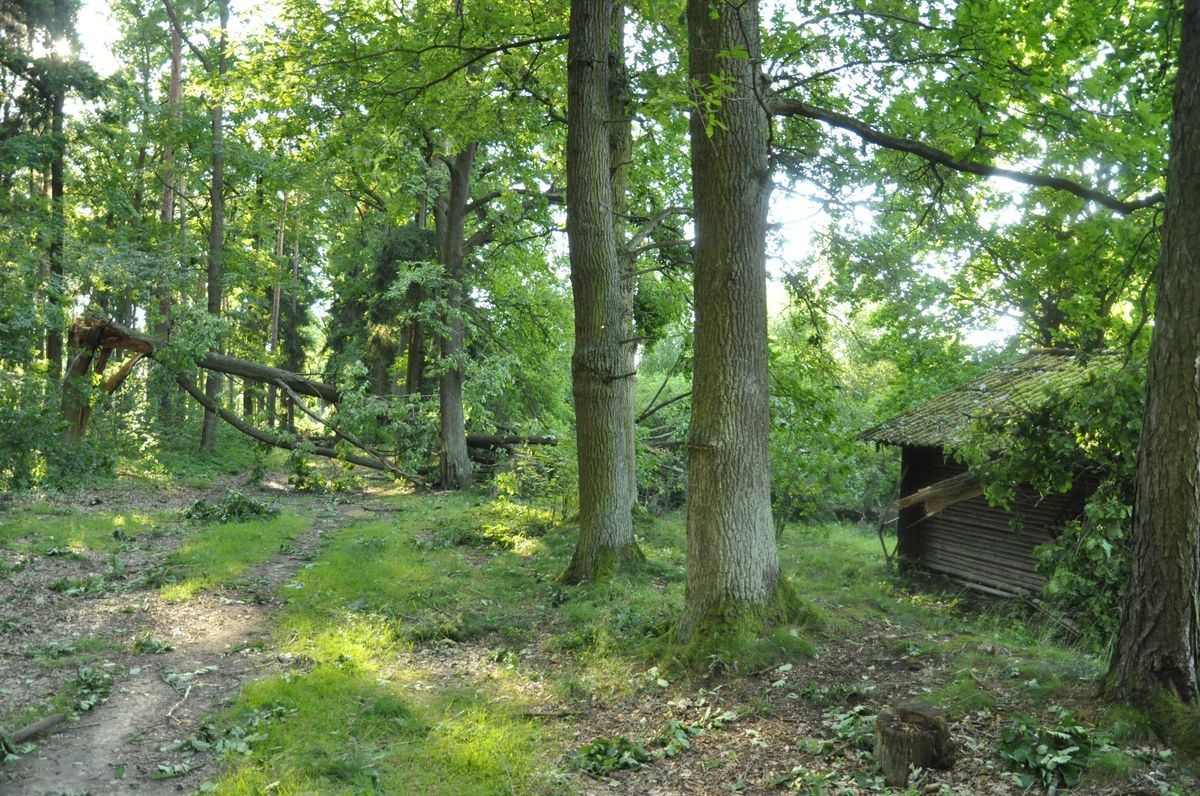 Stromová alej, která dle dendrochronologie vznikla okolo roku 1890. Zde v roce 2014 po jedné z vichřic. Též místo údajného stromu oběšenců.