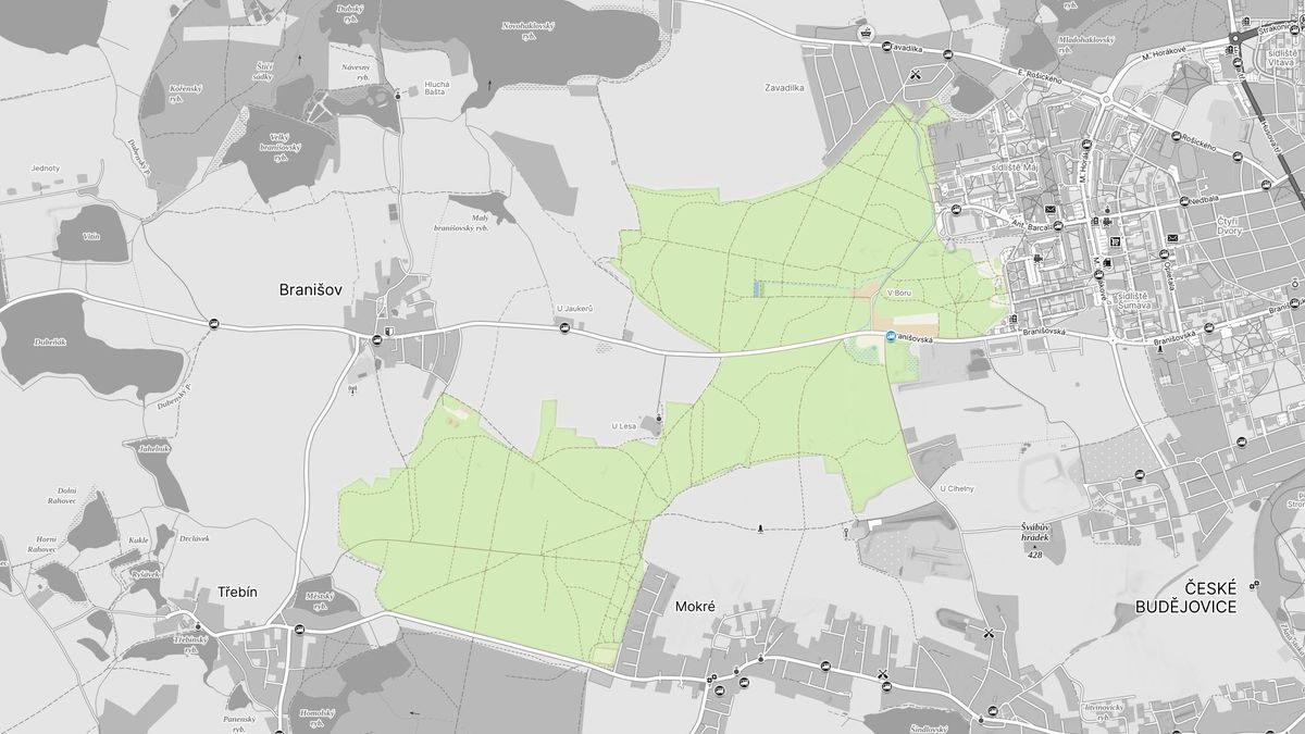 Celý branišovský les Bor dnes.