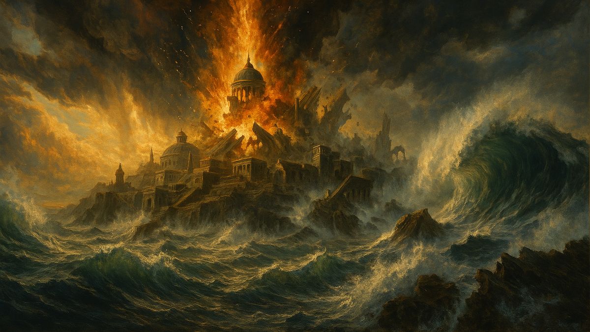 Roku 9600 př. n. l. otřásá Atlantikem po sérii zemětřesení mohutná exploze. Slavný kontinent s vyvinutou civilizací se hroutí do moře. Podle Platóna tak končí slavná Atlantida.