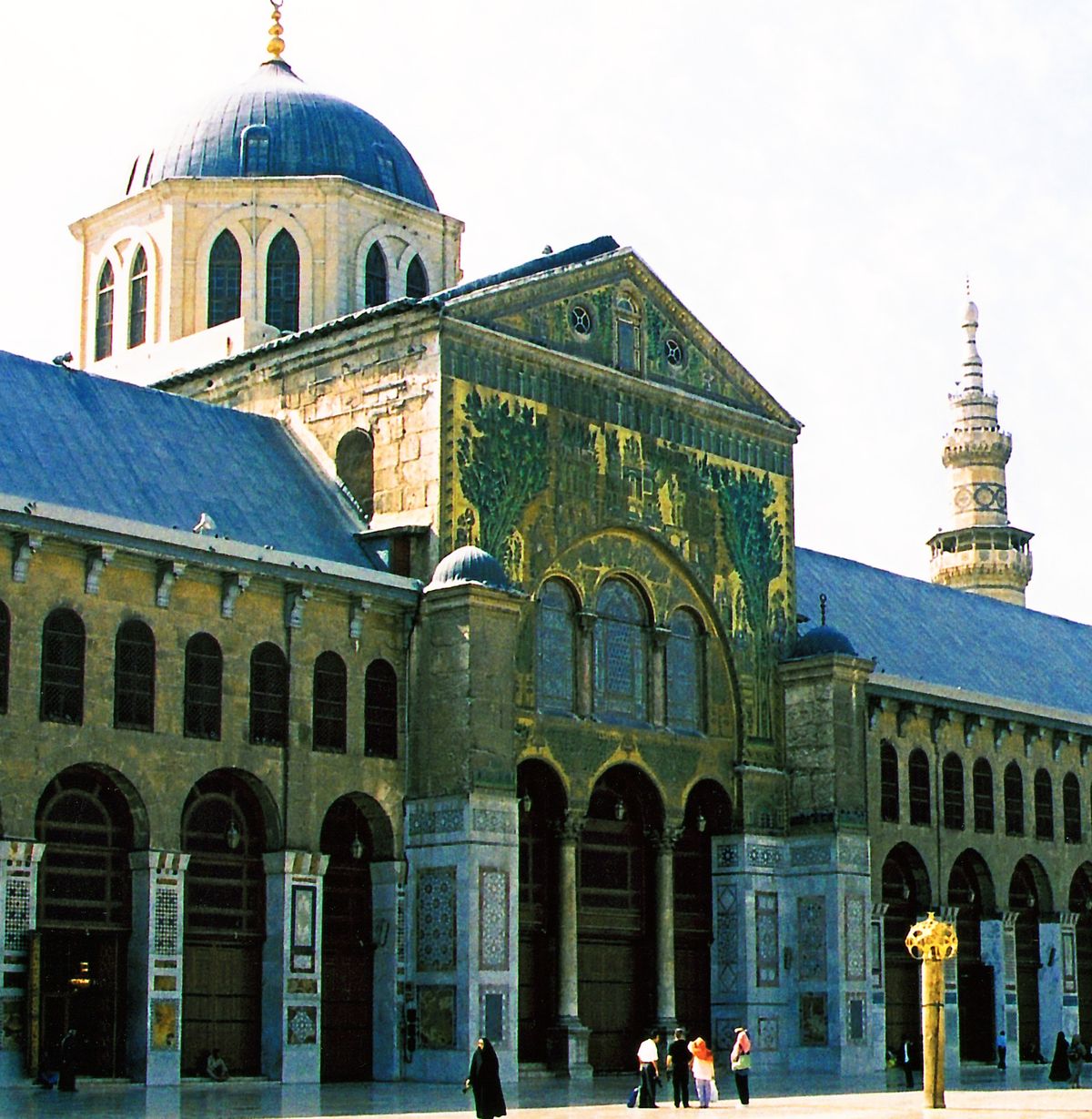 Impozantní budova Umajjovské mešity v syrském Damašku je jednou z největších a nejstarších mešit světa, přestavěná mezi lety 706 – 715 z křesťanské baziliky Jana Křtitele, která vyrostla na místě původního prastarého chrámu boha bouří a hromovládce Hadada (sumerský Iškur, akkadský Adad), jehož stavbu historikové datují na přelom 2. a 1. tis. př. n. l. Fragmenty kamenných konstrukcí z této doby jsou stále viditelné. Již staletí (podle některých historiků snad i tisíciletí) předtím místo sloužilo k náboženským účelům.