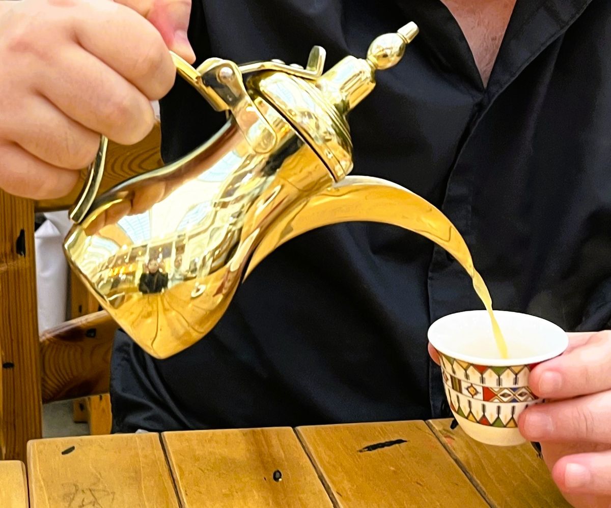 Arabové pijí kávu při všech myslitelných příležitostech, někdy pro našince až zarážejících. Jako milovník saunování často v arabských zemích navštěvuji saunu a byl jsem po prvním saunování v Sýrii překvapen, když jsem zcela vyprahlý po dlouhém saunování (mimochodem doma jsem si myslel, že jsem docela dost chlupatý chlápek, ovšem Syřané v sauně mi jasně demonstrovali, že jsem lysý jako jejich ženy; chlapíci s medvědí srstí by se svými zády zasloužili návštěvu barbera) dostal v relaxační místnosti silnou kávu a vodní dýmku (neboli vodníka).