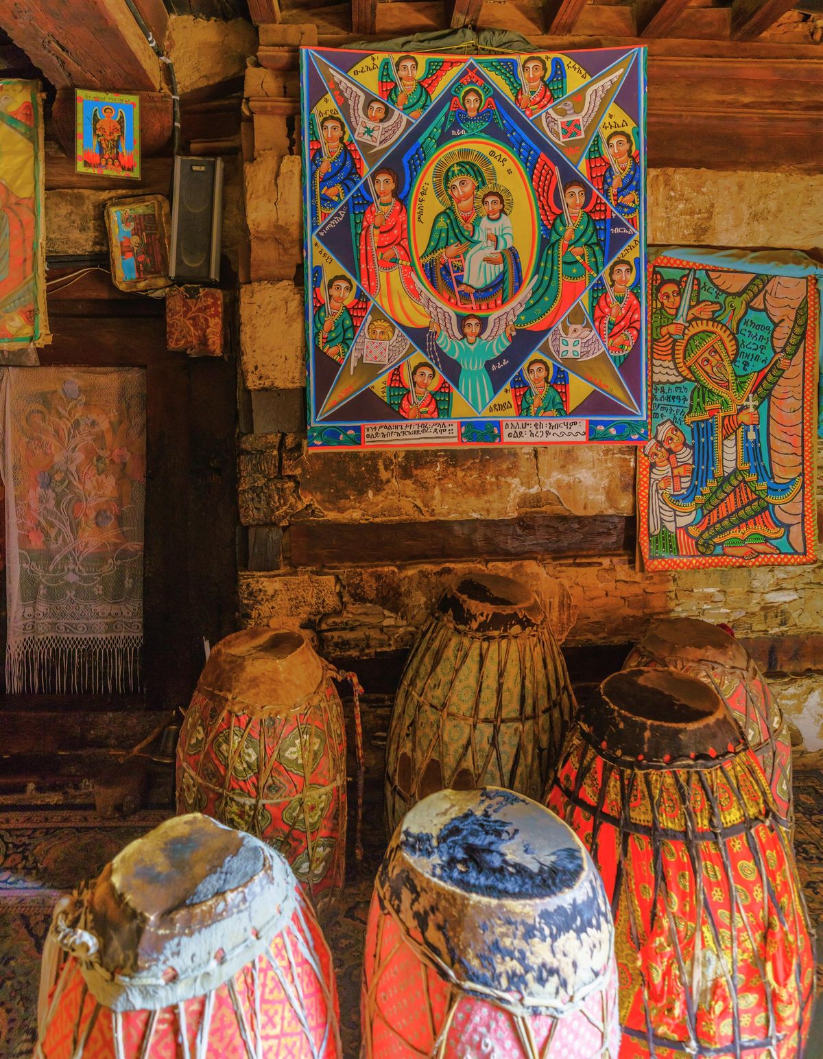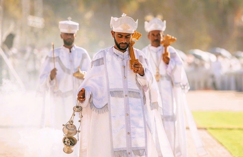 Kněz Etiopské pravoslavné církve v kamenném kostele v Lalibele, Etiopie