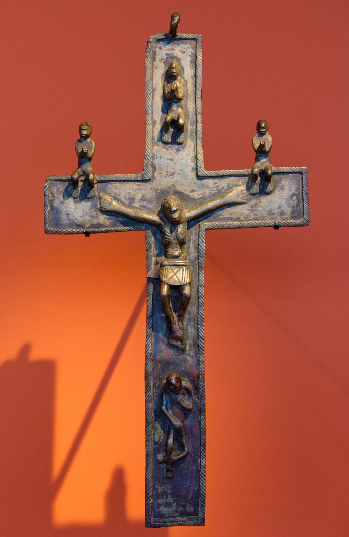 Konžský krucifix zapracovaný do většího magického (léčitelského) amuletu z 19. století