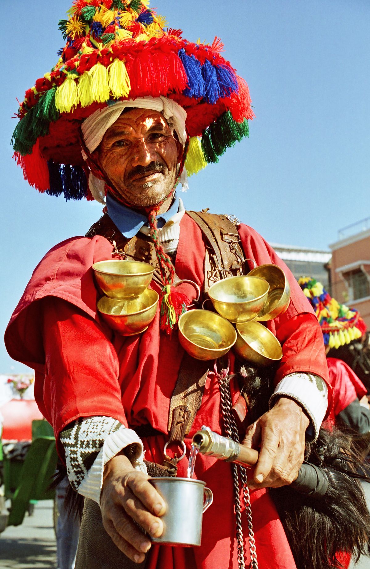 Pouliční distributor kávy a vody v marockém Fésu. Tyhle kávy, které se k vám přimotají v ruchu města jako blesk z čistého nebe, přímo miluji