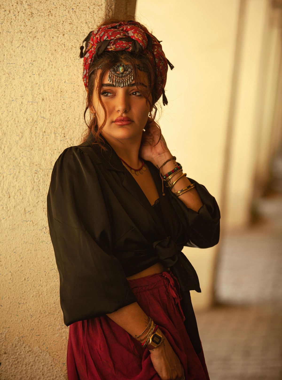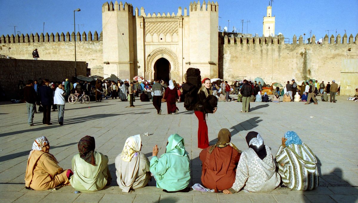 Michaela v plné polní před branami historické části marockého města na samém počátku naší dvouleté cesty napříč Afrikou