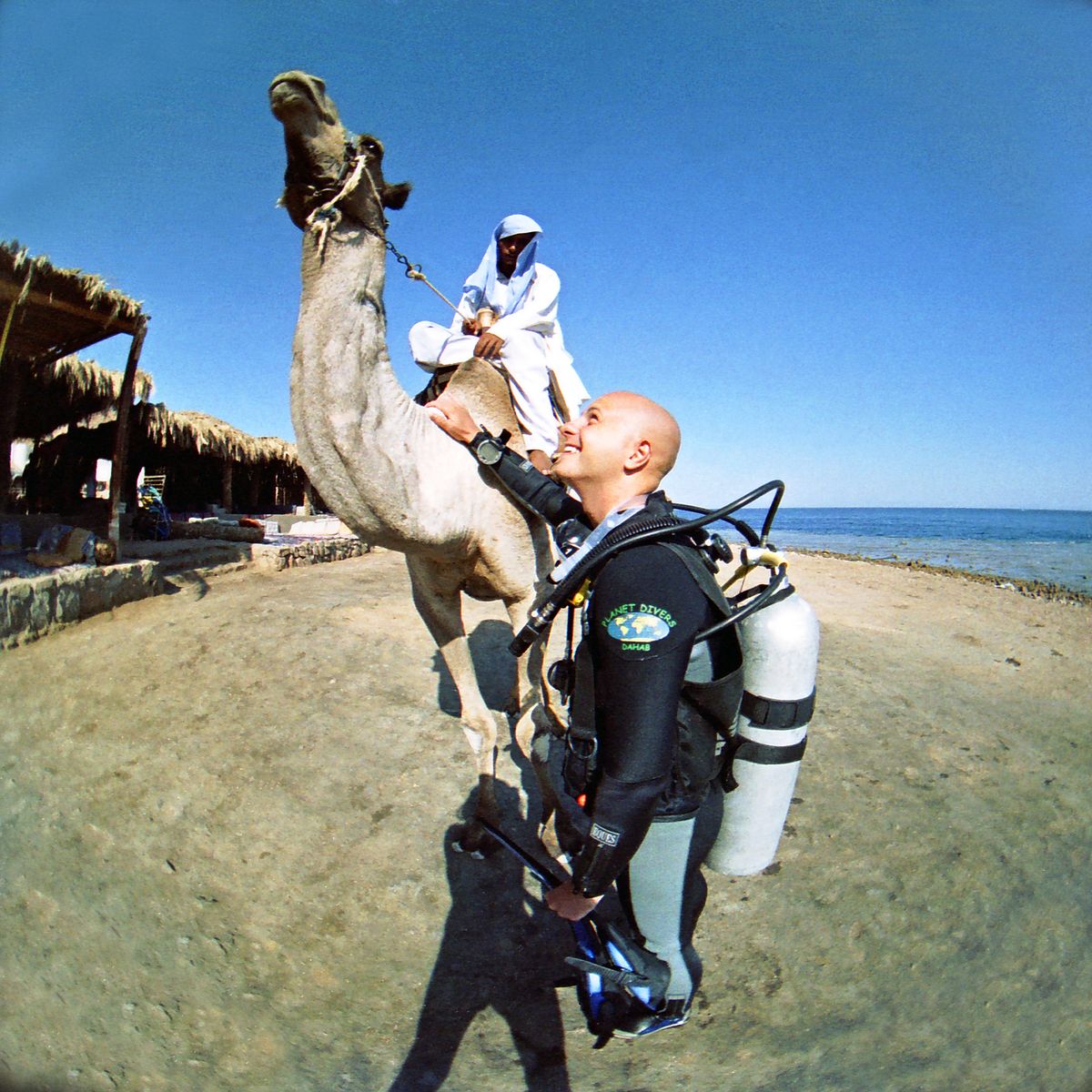 Sinajský Beduín dohlíží na potápěče – v tomto případě na autora článku – ve dvojím zenu: z krásy stvoření pod vodou a ze síly beduínských bylin