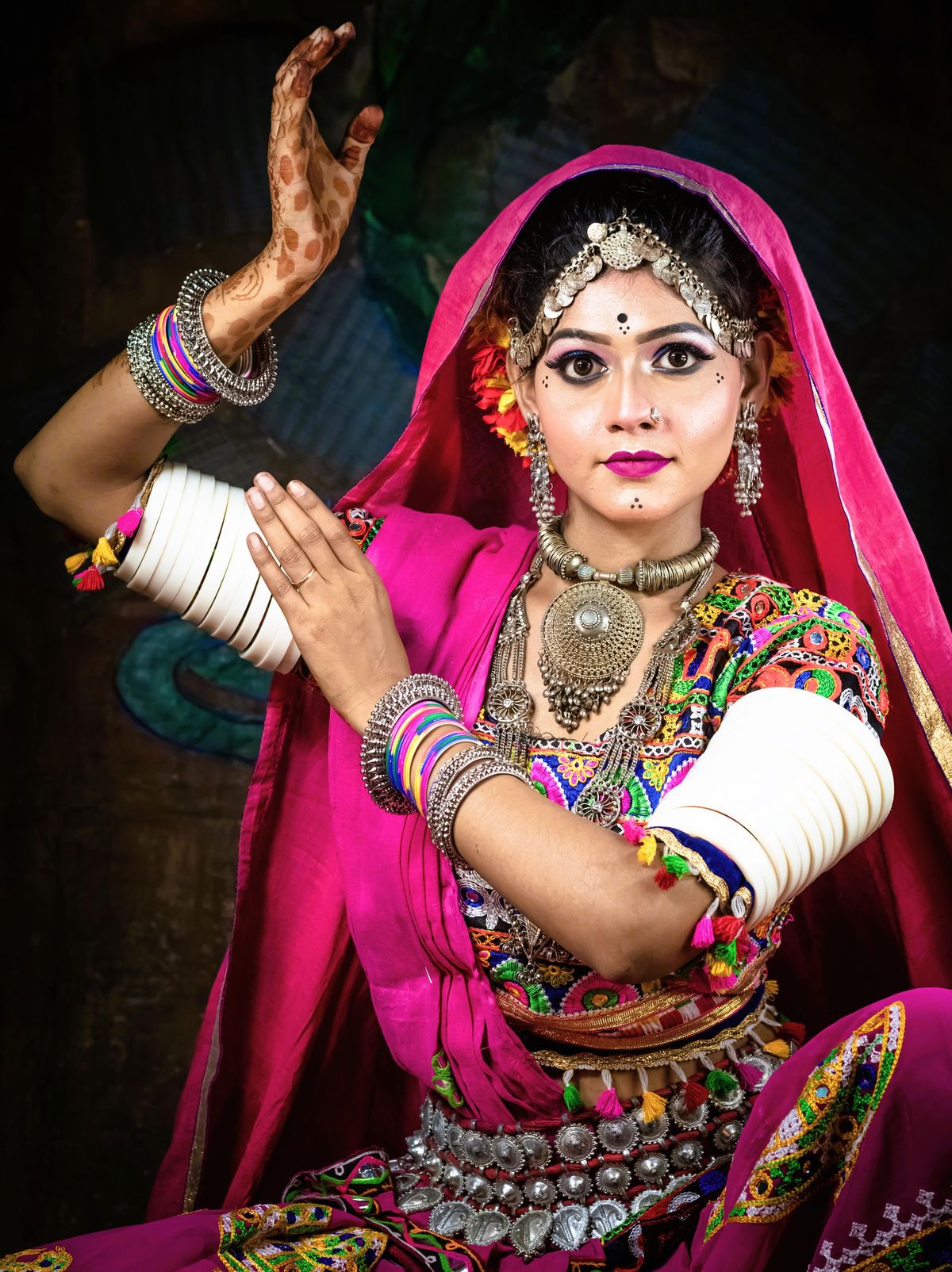 Indka předvádí tradiční tanec ve svátečním oděvu
