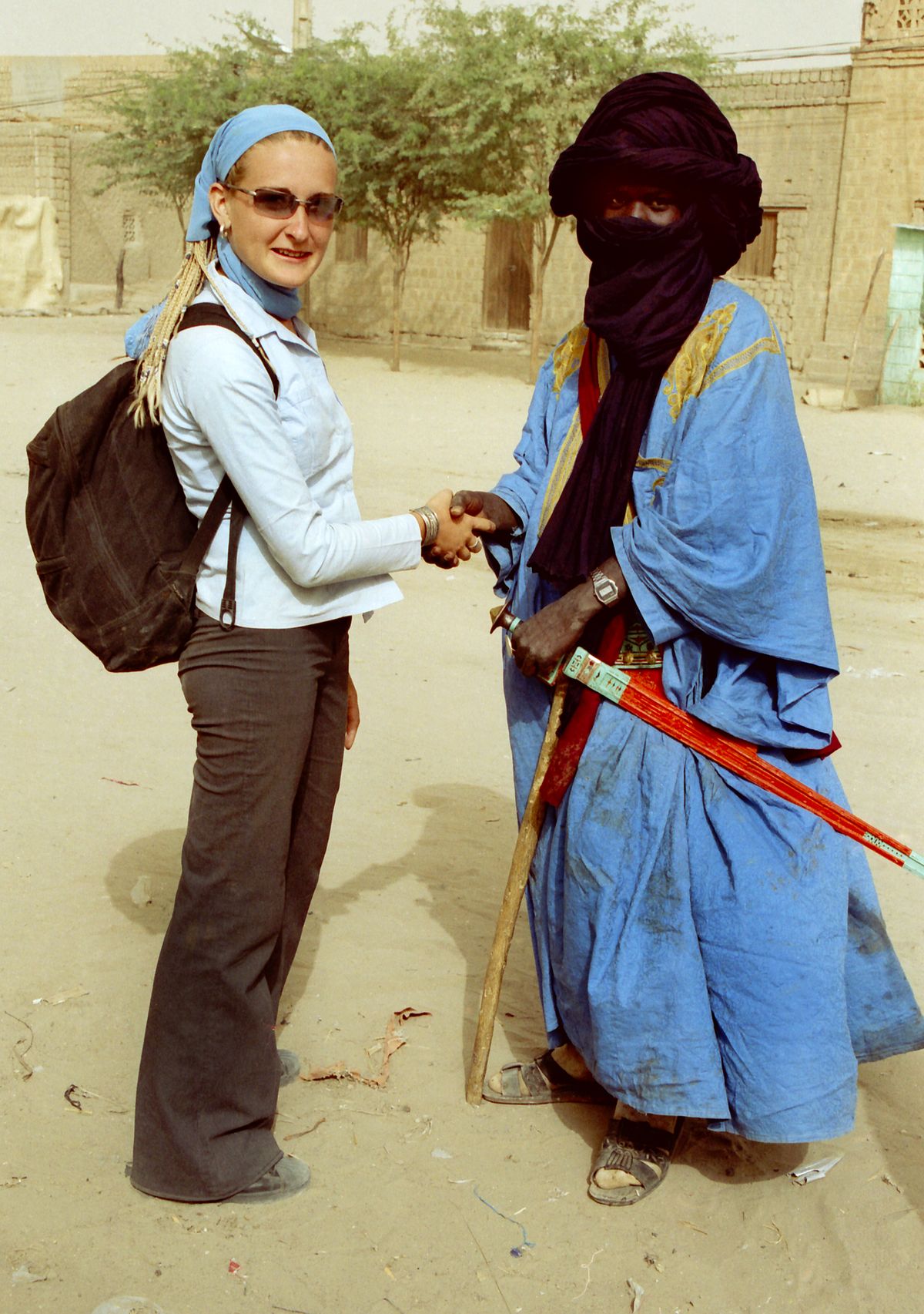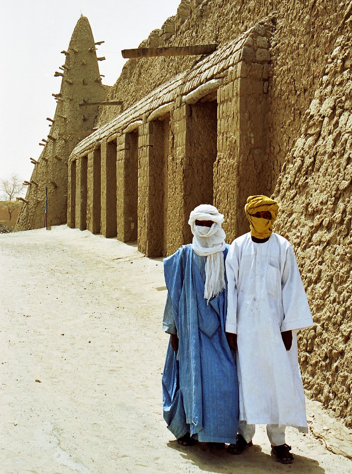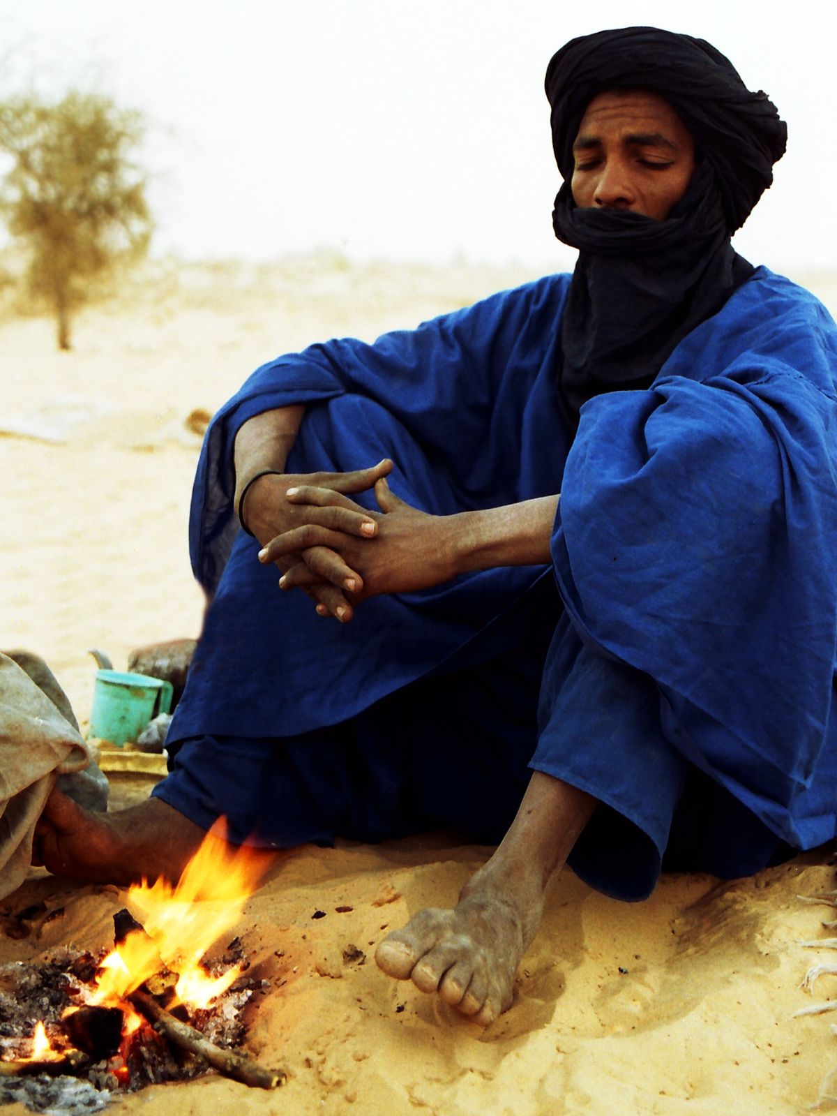 Saharští Tuaregové jsou nesmírně zajímaví lidé s fascinujícím dějinným příběhem a vyznávaným náboženstvím. Jsou to svobodní kočovníci obvykle odění do volných modrých (nebo také žlutých, bílých či zelených) dželábií s černým či bílým turbanem. Jejich důležitým poznávacím znamením je na krku zavěšený tuarežský kříž a meč nebo delší dýka, ovšem disponují i moderními těžkými zbraněmi, které v kombinaci s tradiční krevní mstou – vždyť jsou to oni, kdo dávají nejvyšší míru škále pojmů vendeta a svoboda – pravidelně svlažují písek Sahary čerstvou krví protistrany sporu, pročež je také cestování po jejich území severně od Timbuktu značně dobrodružné. Nechcete-li nic zažít, nejezděte tam. Chcete-li ale rozjiskřit kousek daru, který vám byl dán pod tajemným názvem čas, tady ho rozjiskříte, až bude písek pouště jódlovat ódy na dřeň života.