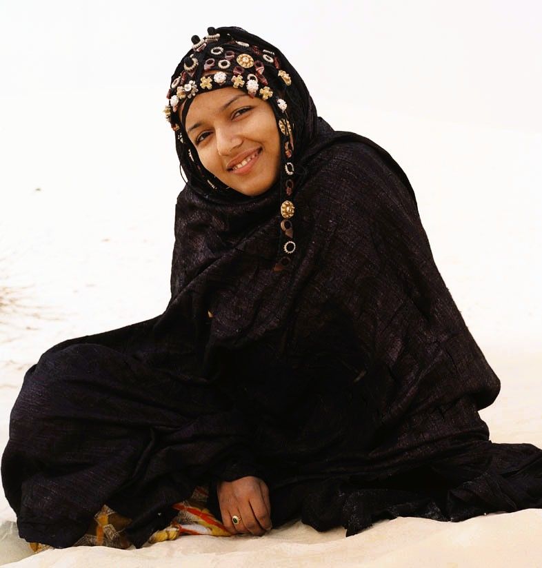 Tuarežka v Mali v tradičních šatech zvaných garb