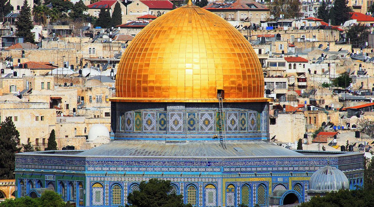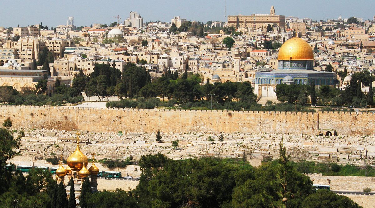 Pohled na Chrámové návrší v Jeruzalémě z Olivové hory