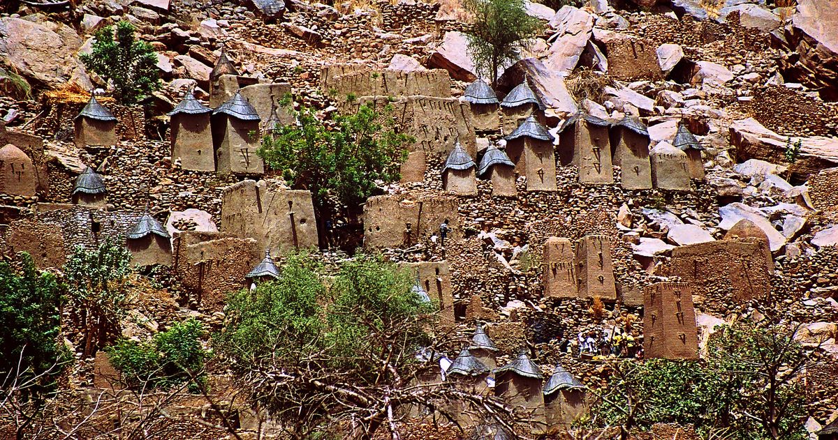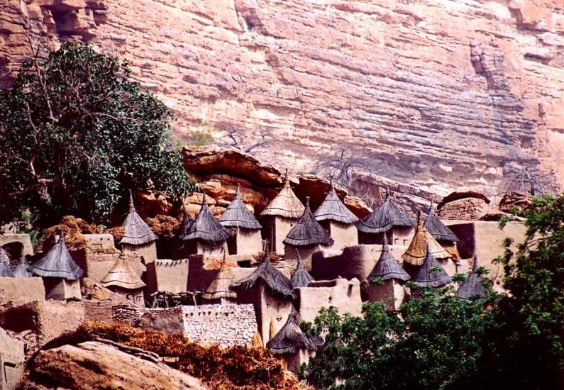Dogoni jsou fascinujícím etnikem, jehož existence je úzce svázána s útesem Bandiagara v jižní části západoafrického Mali. Bandiagara je pískovcový terénní zlom dlouhý přibližně 150 km, dosahující výšky místy až 500 m, přičemž nad útesem i pod ním se rozkládá poměrně suchá rovina. Dogoni obývají unikátní hliněné vesnice (které jsou krásným prolomeným výhledem do minulosti Afriky) vystavěné na horní hraně útesu, vesnice přistavěné k útesu v jeho spodní hraně, vesnice rozeseté pod útesem a v neposlední řadě labyrint jeskyní přímo v útesu.