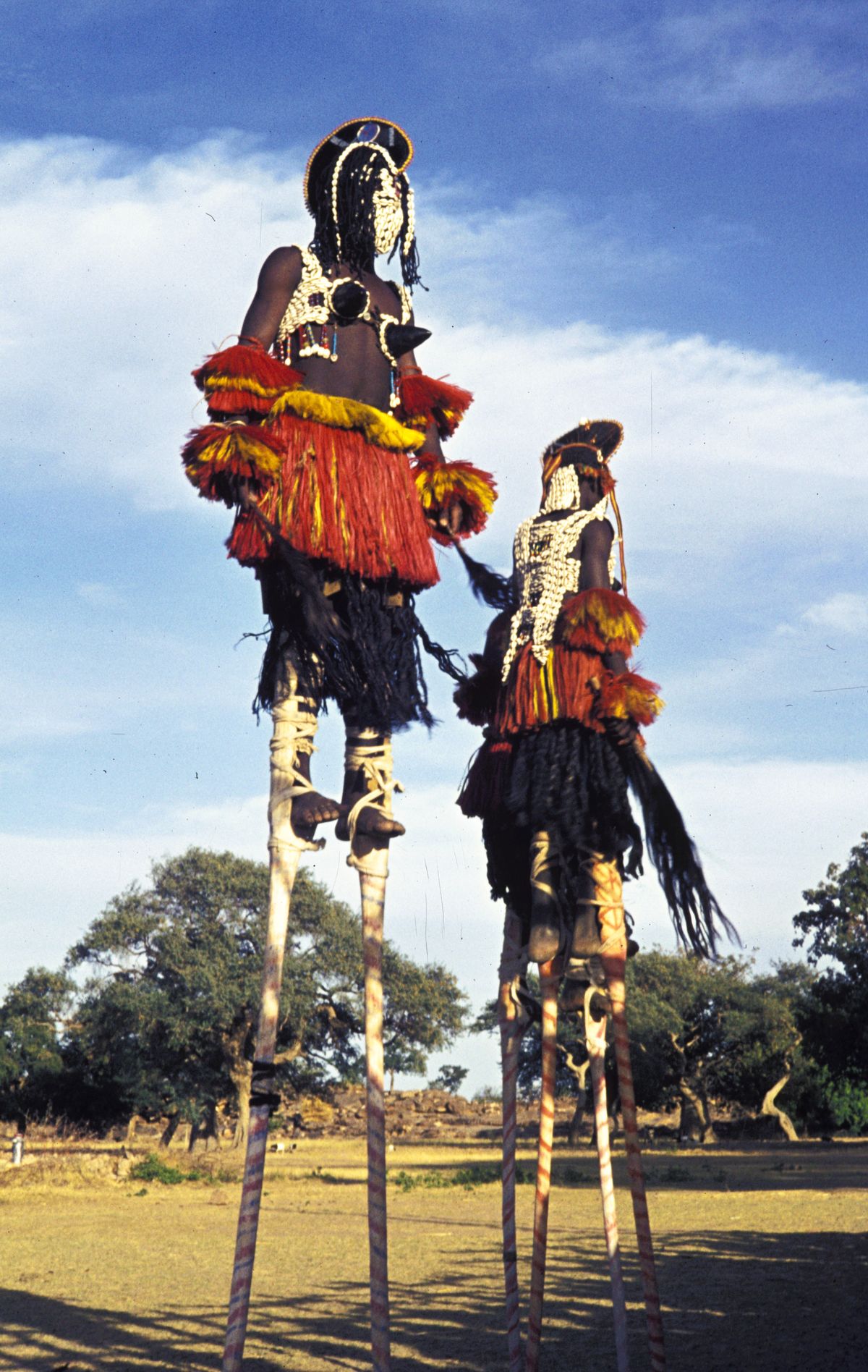 Dogoni na chůdách při náboženském festivalu, Mali