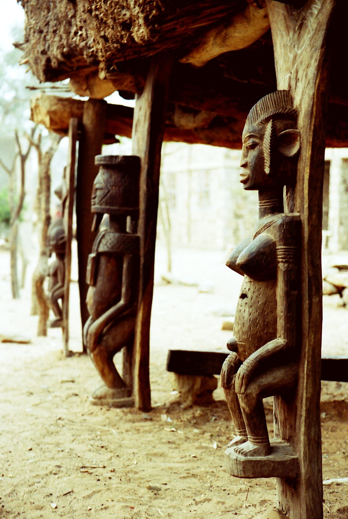 Dogonské sochy podpírají přístřešek hogona