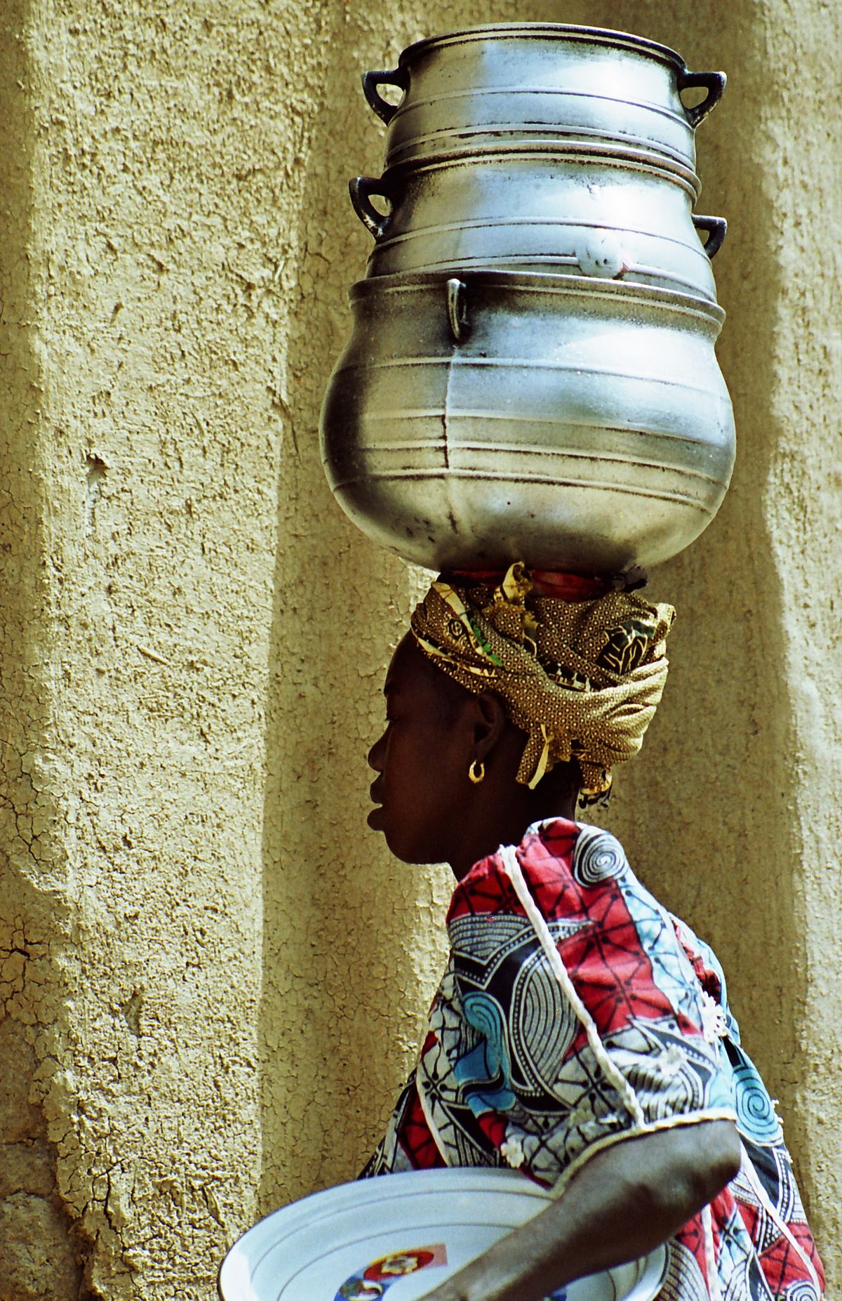 Náklad se v západní Africe obvykle nosí na hlavě. Někdy se na hlavě – zcela bez legrace – nosí i boty… Mali