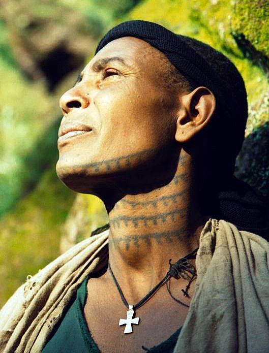 Etiopský křesťan s tradičním tetováním, Lalibela