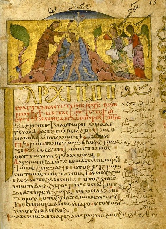 První strana Markova evangelia v koptštině a arabštině ze 13. století, Egypt