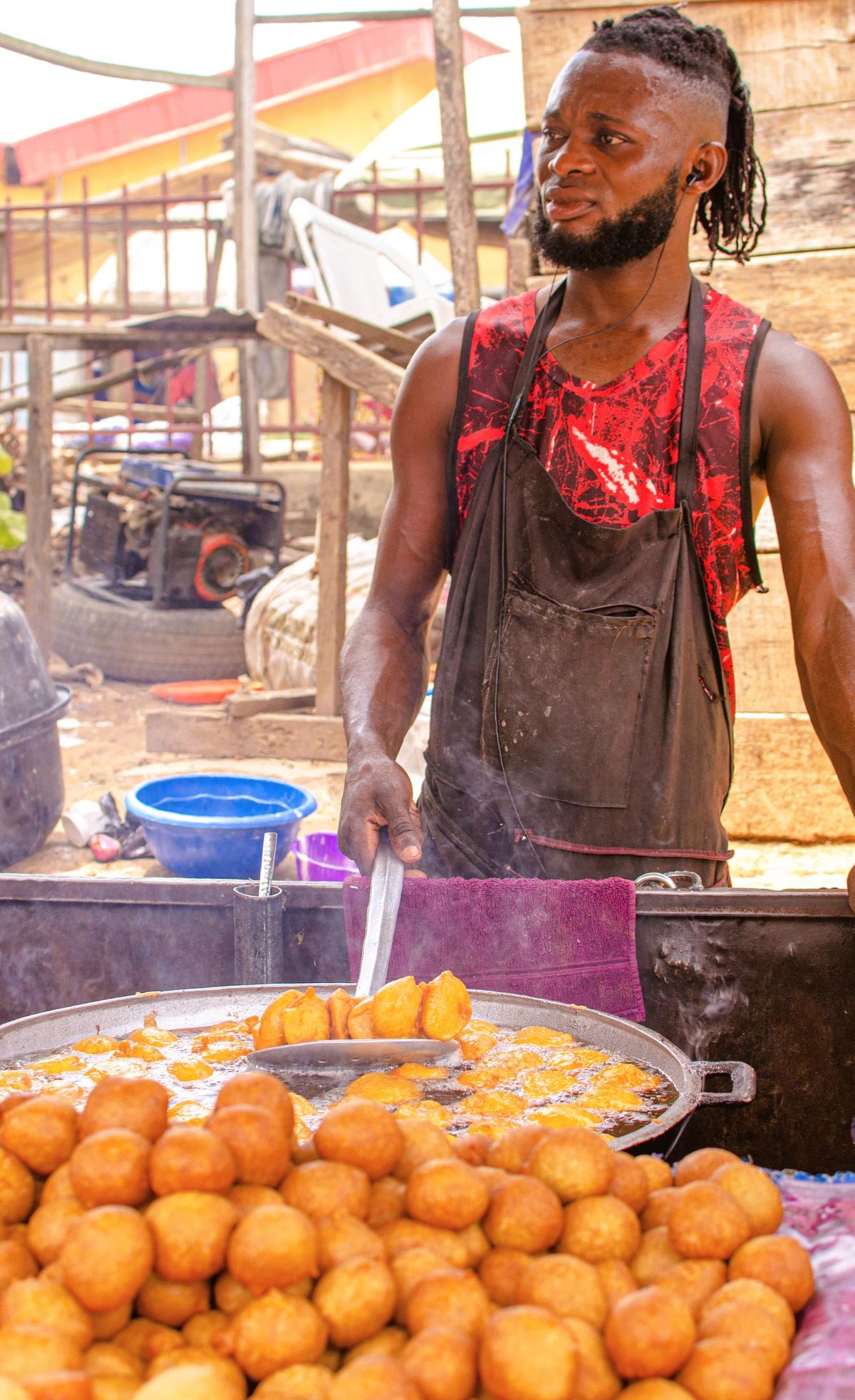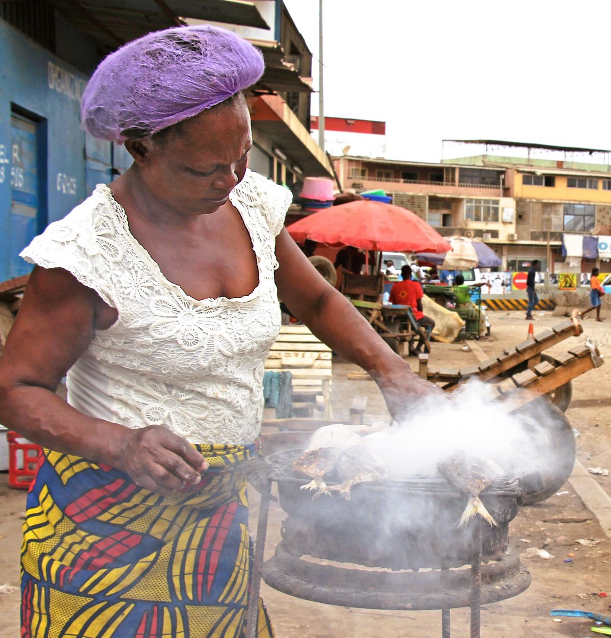 Obecně je subsaharská kuchyně založena na rýži, prosu, čiroku, podzemnici olejné, arašídech, fazolích, jamech, kokosech, sladkých bramborech a manioku; na pobřeží jsou samozřejmostí ryby, ve vnitrozemí „co buš dá“, pokud dá… V rovníkové Africe jsem hlad uplácel ovocem. Různé druhy banánů – podávané například smažené kořeněné v pokrmu kelewele v Libérii – a kokosové ořechy jsou solidním pilířem afrického přežití.