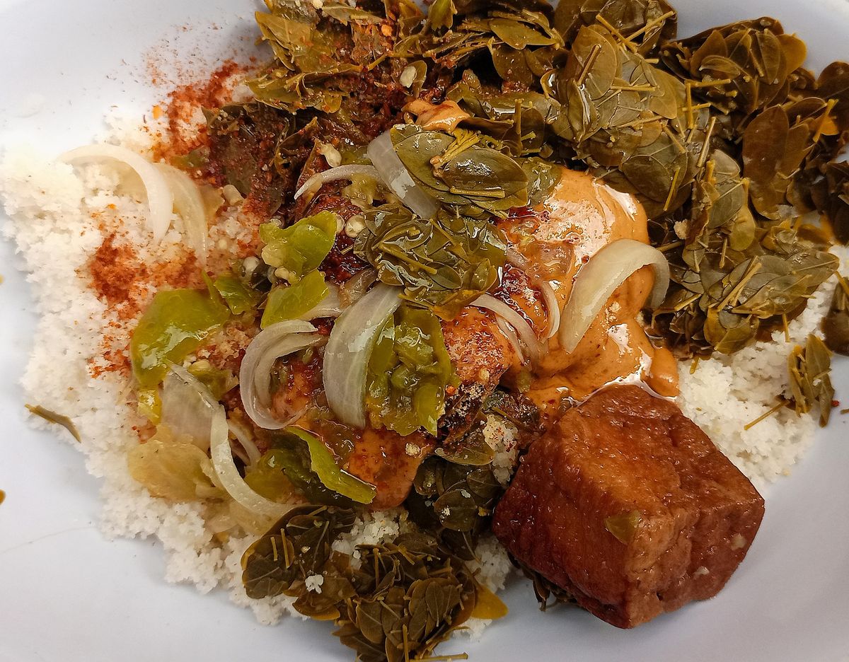 V severní Africe se hojně a vyváženě používá koření, v kontrastu se subsaharskou Afrikou, kde se koření obecně téměř nepoužívá (s výjimkou východoafrického pobřeží) a pokrmy bývají chuťově relativně mdlé. Tažínu podobný libyjský pokrm bazin je podávaný s rajčatovou omáčkou, vejci, bramborami a skopovým masem. Ve východní Libyi u hranic s Egyptem může cestovatel bazin zaklínit palačinkou s banánem promazanou medem a dozdobenou datlí jako závěrečnou jednohubkou. Sever Afriky nabízí také výborné, masem nebo naopak sladkou směsí plněné pečivo, obvykle trojúhelníkového tvaru a mnoho lokálních (pro našince až krapet přeslazených) sladkostí.