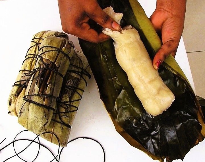 Pokrm z manioku se v Demokratickém Kongu vaří v banánových listech
