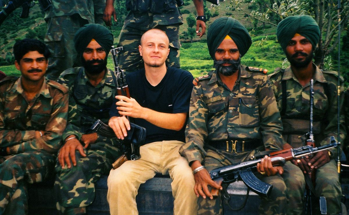 Autor mezi mimořádně přátelskými sikhy v indickém Kašmíru (poblíž hranice Pákistánu a Číny) v roce 2000. Současná (značně sešlá a zfotrovatělá) podoba autora v závěru článku