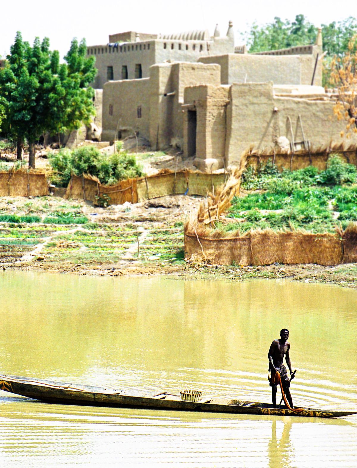 Interiér není vzdušný a otevřený, jak by se mohlo při pohledu zvenčí zdát, je totiž plný masivních hliněných pilířů velmi nahusto rozprostřených, aby podepíraly strop této jednoduché, leč o to úchvatnější stavby. Každý týden probíhá před mešitou rušný trh, kde je možné pozorovat nádherný etnický, kulturní a náboženský mix. Z mého pohledu religionisty je nejzajímavější synkretismus islámu s malijským kultem řeky Niger zvaným faro.