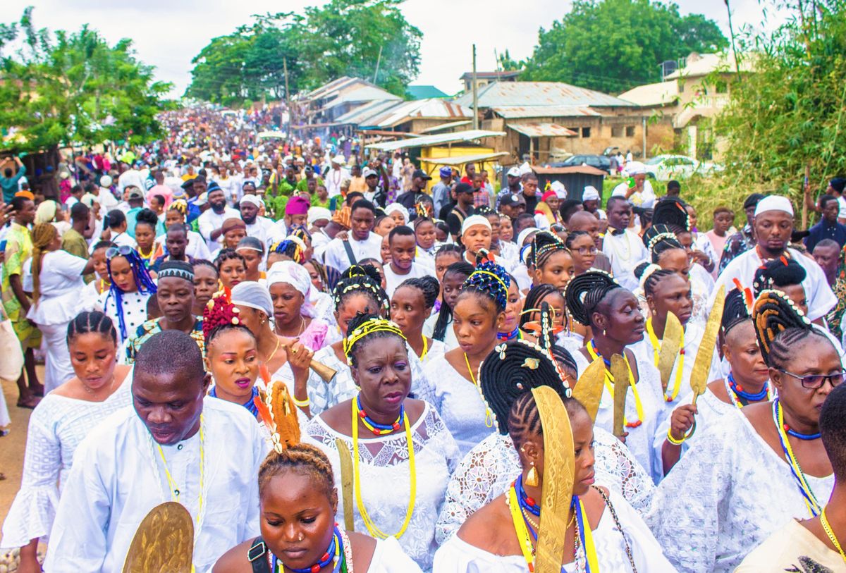 Ostatní orišové slyšeli o kráse Obatalova stvoření a chtěli se na zemi podívat. Obatala souhlasil a trval na tom, že pokud už budou na zemi, musí poslouchat modlitby lidí a přiložit ruku k dílu. Orišové tak získali rozličné úkoly a kompetence. To ovšem rozhněvalo orišu Olokun, která se cítila uražena, že nebyla oslovena a zapojena do stvoření a rozhodla se pevninu zalít vodami a zlikvidovat. Vzedmula obrovské vlny a způsobila ničivou potopu, kterou přežila jen hrstka lidí. Obatala byl nesmírně zasažen ztrátou života a poprosil nejvyššího Boha Oloruna o zásah. Ten tedy sestoupil, zkrotil vody velké potopy a zachránil pevninu. Přeživší lidé jej prosili, aby mezi nimi zůstal a dále je ochraňoval. Olorun odmítl, ale pro své milosrdenství lidi naučil věšteckým technikám, ovládání neviditelných sil a náboženským úkonům, které nikdy nebyly zapomenuty a předávají se z generace na generaci. Jorubové věří v možnost reinkarnace (atunwa) lidské duše v rodové linii.