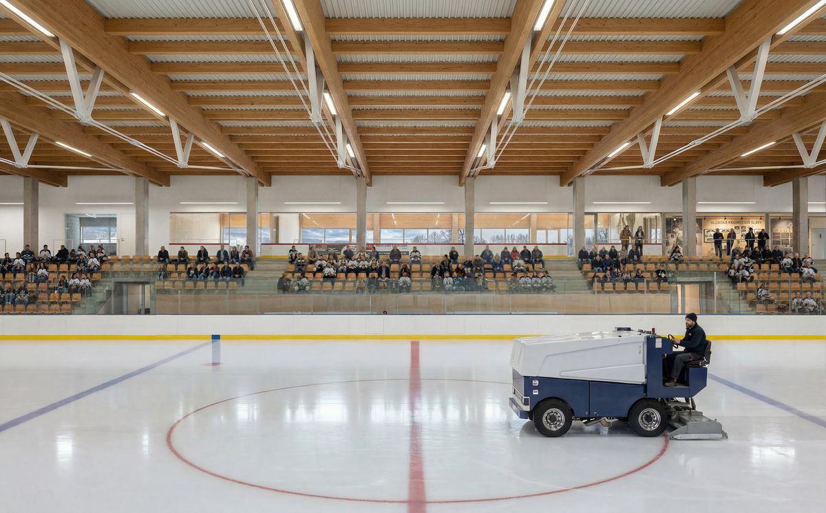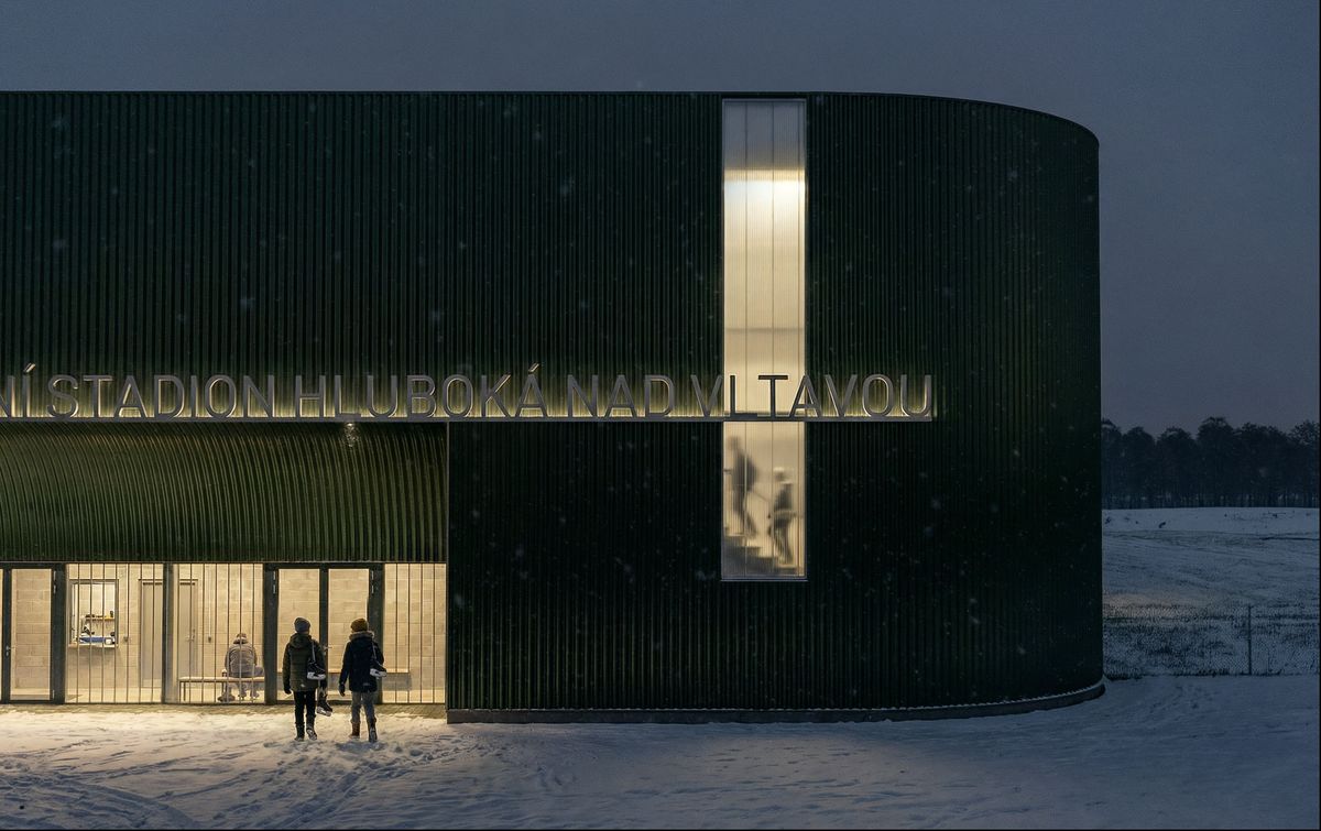 Budoucí krytý zimní stadion vyroste na místě stávajícího otevřeného kluziště a nabídne celoroční provoz. Umístění na břehu Vltavy ovlivnilo architektonické řešení objektu – hlavním materiálem pláště bude zelený plech, který citlivě reaguje na okolní krajinu. Dominantním prvkem interiéru budou dřevěné vazníky nad ledovou plochou, jež zlepší akustiku, tepelný komfort a zároveň posílí architektonickou identitu stadionu.